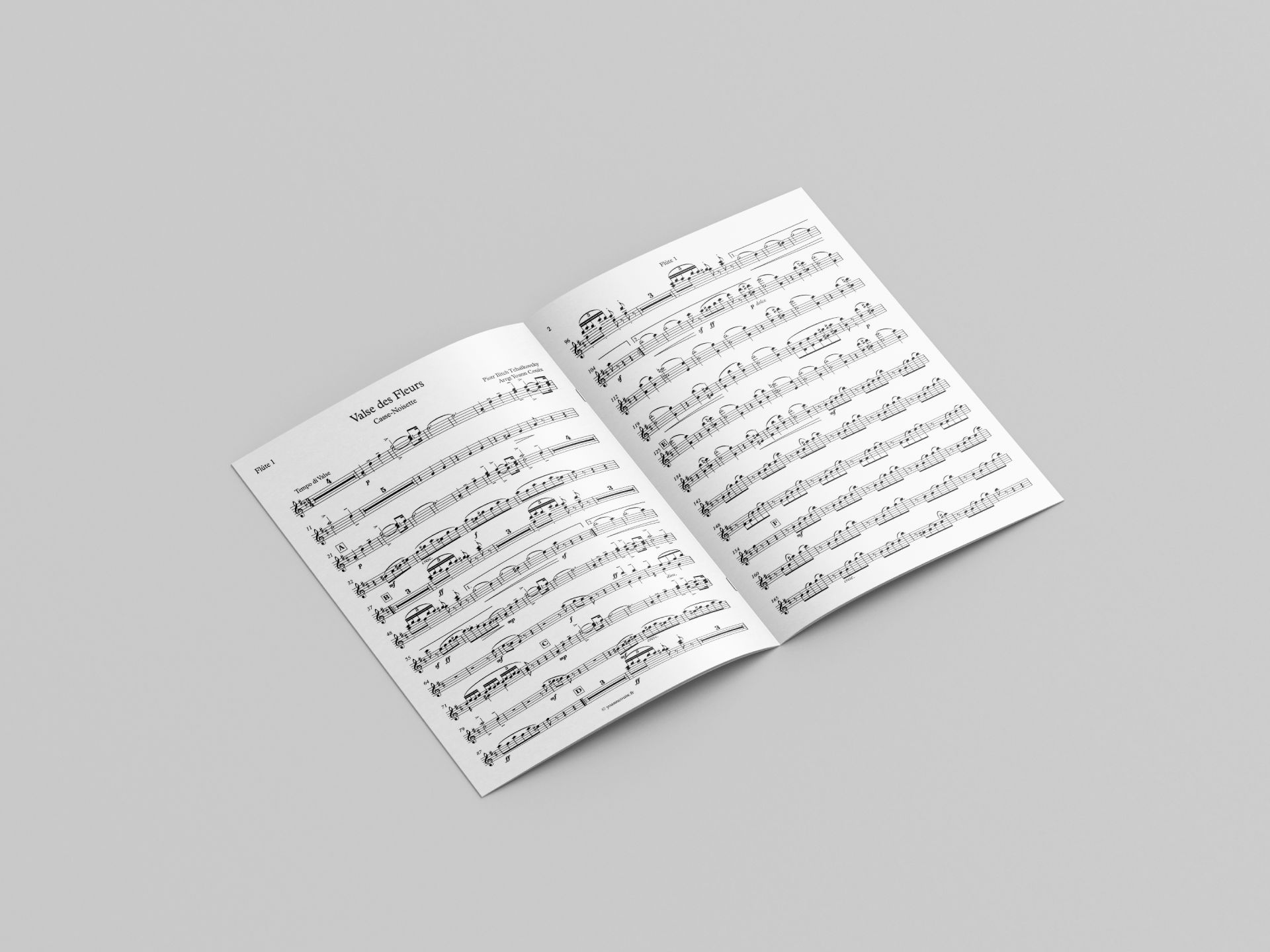 Parties : Flûte 1 jouant le piccolo – Flûtes 1 – Flûtes 2 – Flûtes 3 – Flûtes altos – Flûtes basses. Toutes les parties divisent en 2 voix (sauf le piccolo).